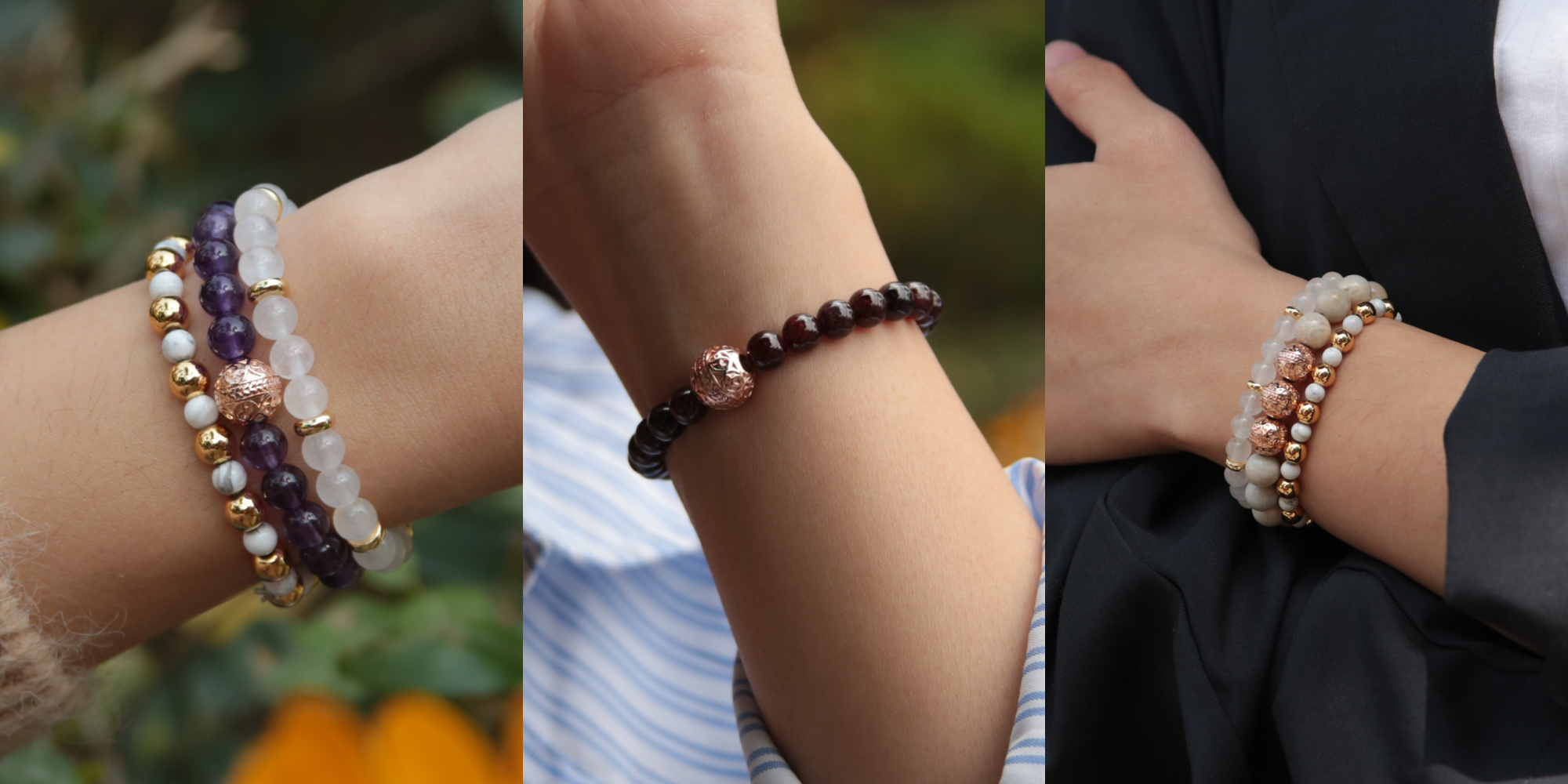Amethyst Rose Gold Bracelet with Howlite and White Jade Bracelet