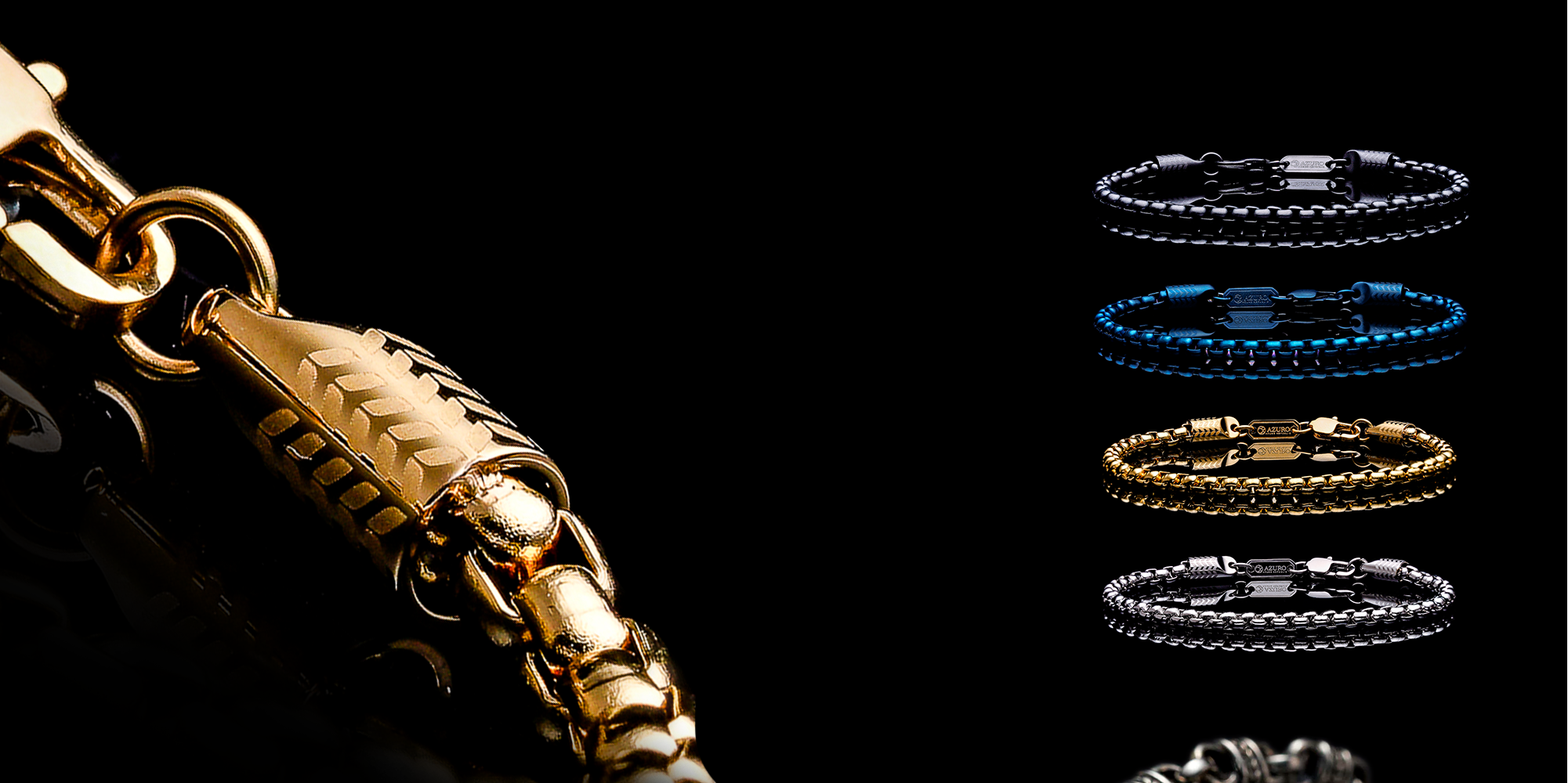 Enhance your style with Azuro Republic's classic gold chain box bracelet for men. This premium men's accessory, featuring a unique laurel clasp and logo tag, adds flair and identity to your wristwear. Elevate your look with our distinctive men's chain bracelet—a perfect accessory for the modern gentleman's fashion.