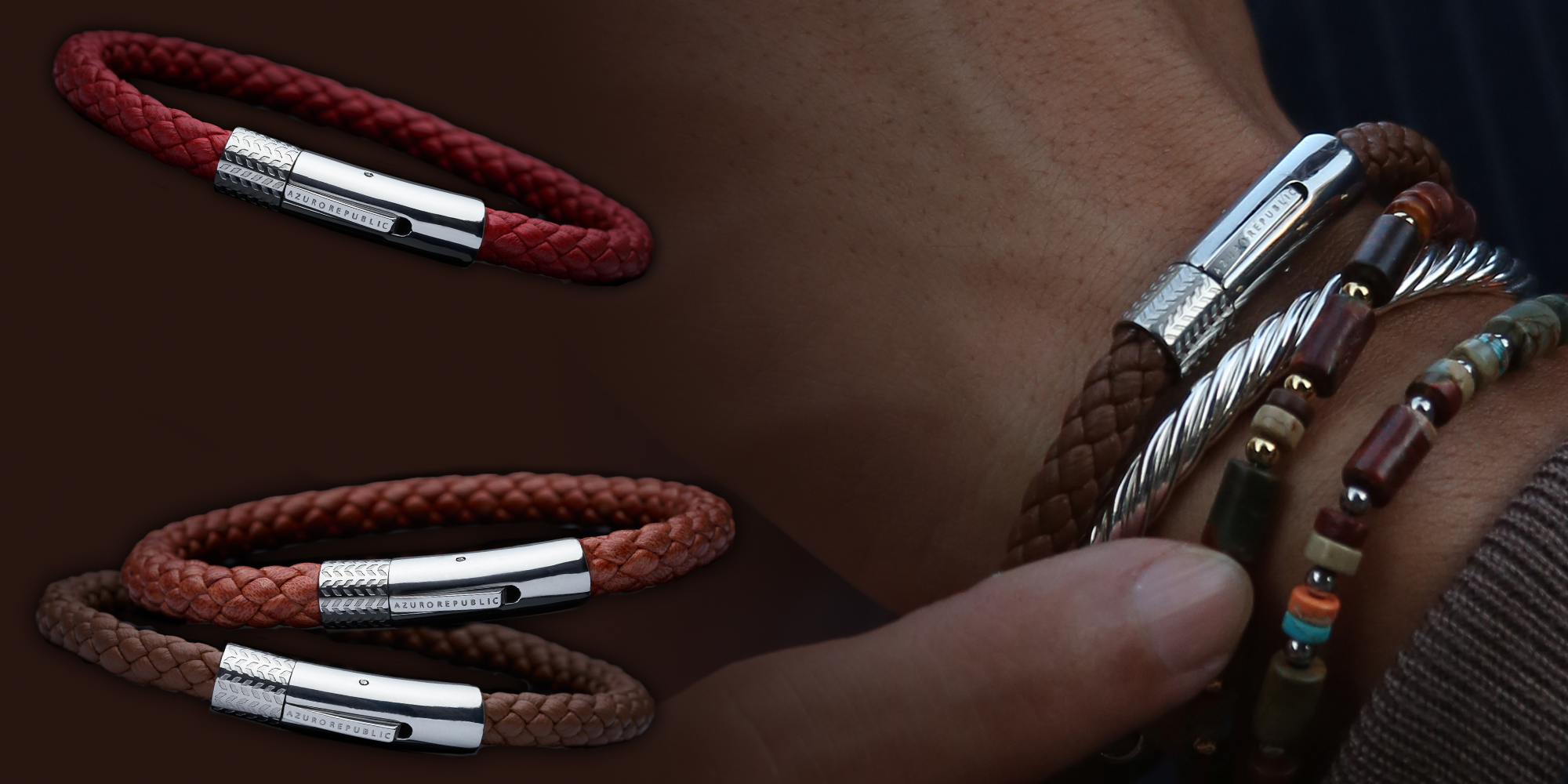 Applied authentic Nappa leather and dyed the color with environmentally friendly material. A black round leather wrap bracelet goes perfectly with a street style. The 316 surgical stainless steel clasp is engraved with Azuro Republic iconic leaves design and embedded with Azuro logo.